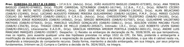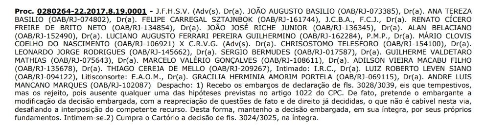 O juiz auxiliar André Pinto, da 52ª Vara Cível do Tribunal de Justiça do Rio, rejeitou em decisão disponibilizada há pouco os embargos de declaração então opostos na ação que anulou a urna 7. O magistrado manteve a decisão da juíza Maria Cecília Pinto Gonçalves. Espia #lanceVAS