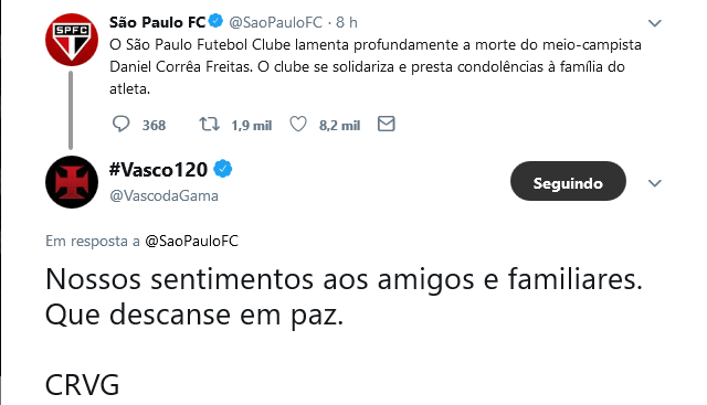 Fonte: Twitter oficial do Vasco