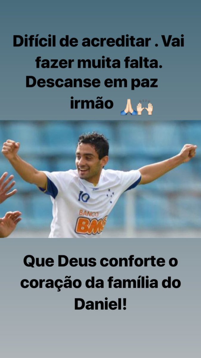 Vinícius Araújo lamenta morte do meia Daniel, seu ex-companheiro no Cruzeiro