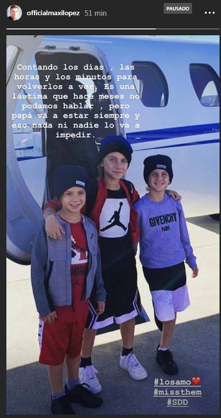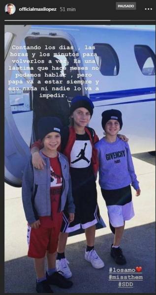 "Contando os dias, as horas e os minutos para voltar a vê-los. É uma lástima que façam meses que não podemos nos falar. Mas o papai vai estar sempre presente e isso nada e nem ninguém vai impedir. Eu os amo. Saudades deles", escreveu na publicação no Instagram.