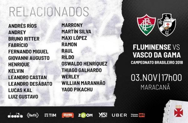 Veja os relacionados do Vasco para o clássico deste sábado contra o Fluminense