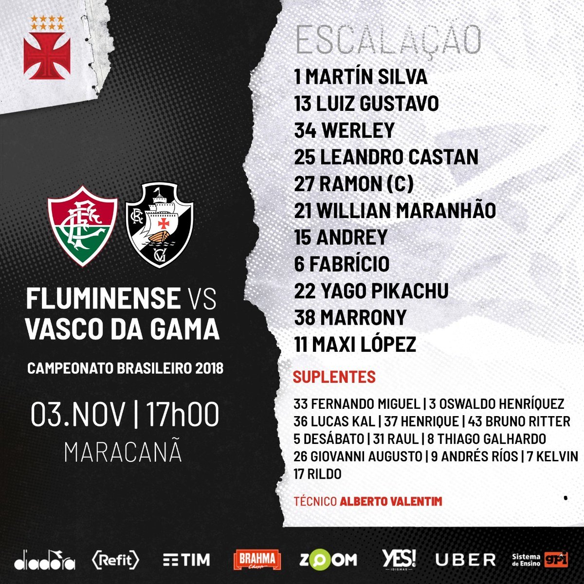 Confira a escalação do Vasco; Alberto Valentim repete o time pela 1ª vez