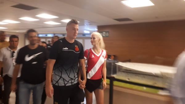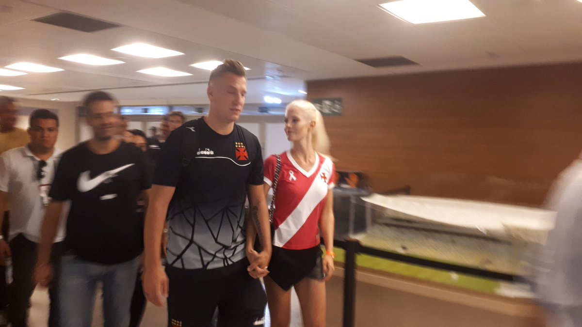 Maxi López deixa o Maracanã de mãos dadas com a namorada, vestida com a camisa do Vasco