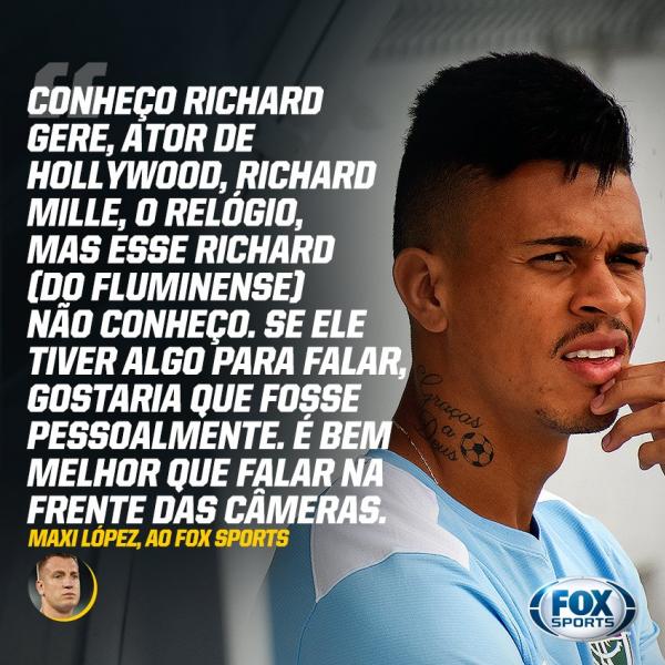 "Conheço Richard Gere, ator de Hollywood, Richard Mille, o relógio, mas esse Richard (do Fluminense) não conheço. Se ele tiver algo para falar, gostaria que fosse pessoalmente. É bem melhor que falar na frente das câmeras", afirmou Maxi López.