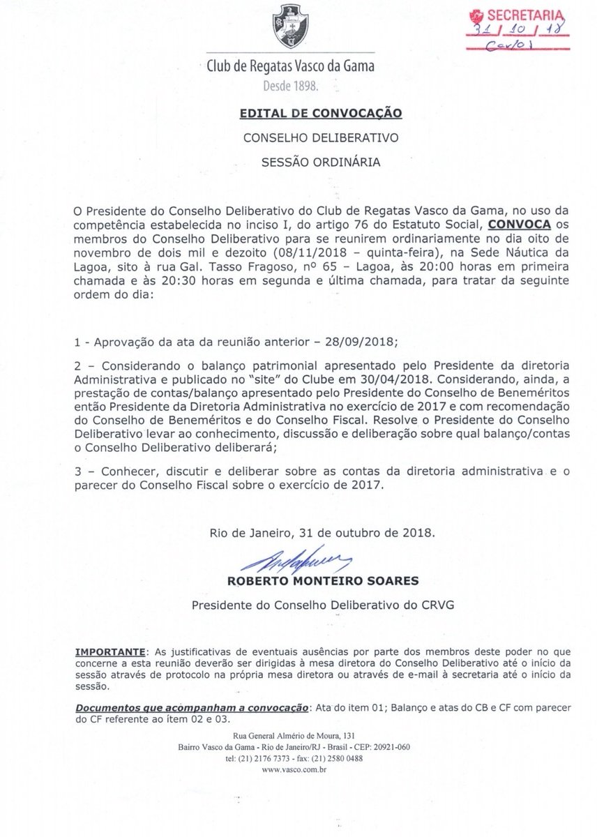 Após os discursos dos presentes, o Conselho Deliberativo do Vasco votou o item 2, que escolheria qual balanço seria colocado em votação. Ganhou o do Eurico Miranda. Votação foi no esquema "senta e levanta", sem contabilização dos números #lanceVAS