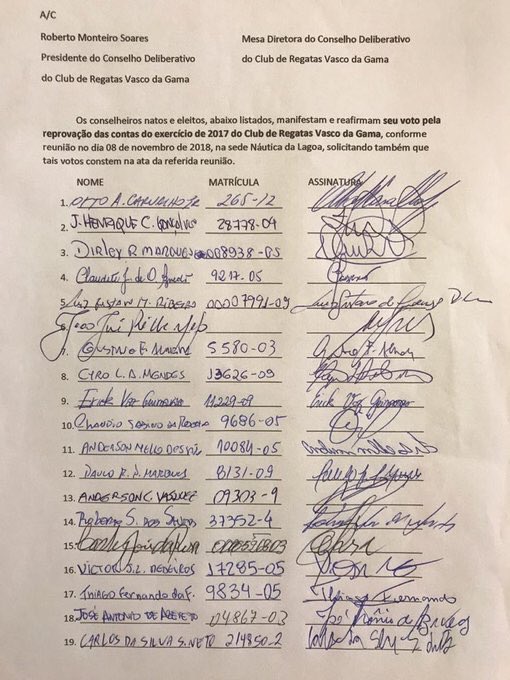 Em respeito a vc, vascaíno que nos segue, a lista dos 47 que votaram contra a vergonha de ontem. Resta saber quem serão os responsáveis por publicar e assinar o balanço aprovado ontem. #sempreaoladodovasco