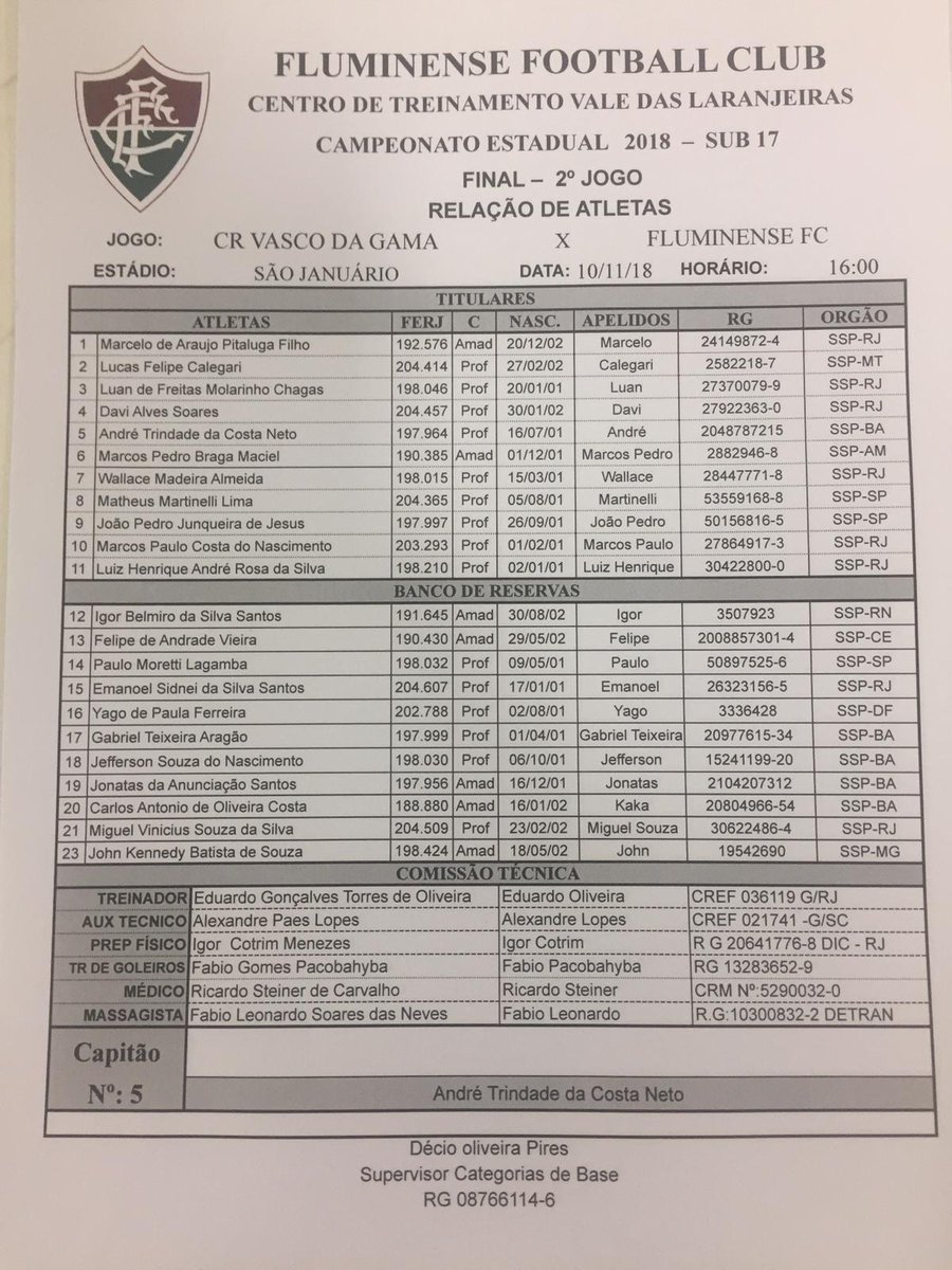 @VascodaGama e @FluminenseFC escalados para a decisão do Campeonato Carioca sub 17, às 16h, em São Januário. A TV @FFERJ transmitirá ao vivo pelo Facebook e YouTube: fferjoficial