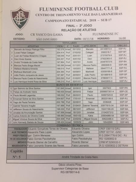 Nosso S17 escalado para a decisão em @saojanuario do Campeonato Carioca diante do Fluminense.