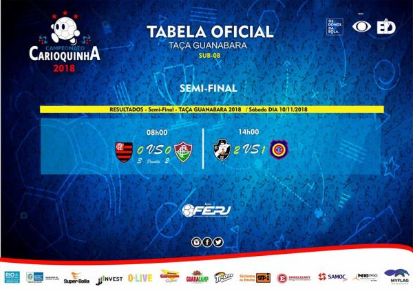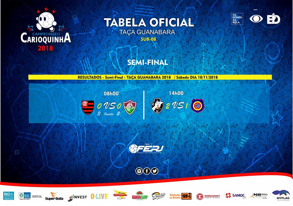 Pela Taça Guanabara do Campeonato Carioquinha Sub-08, o Vasco derrotou o Madureira por 2 a 1 no último sábado e se classificou para a final, que será contra o Flamengo, que eliminou o Fluminense nos pênaltis.