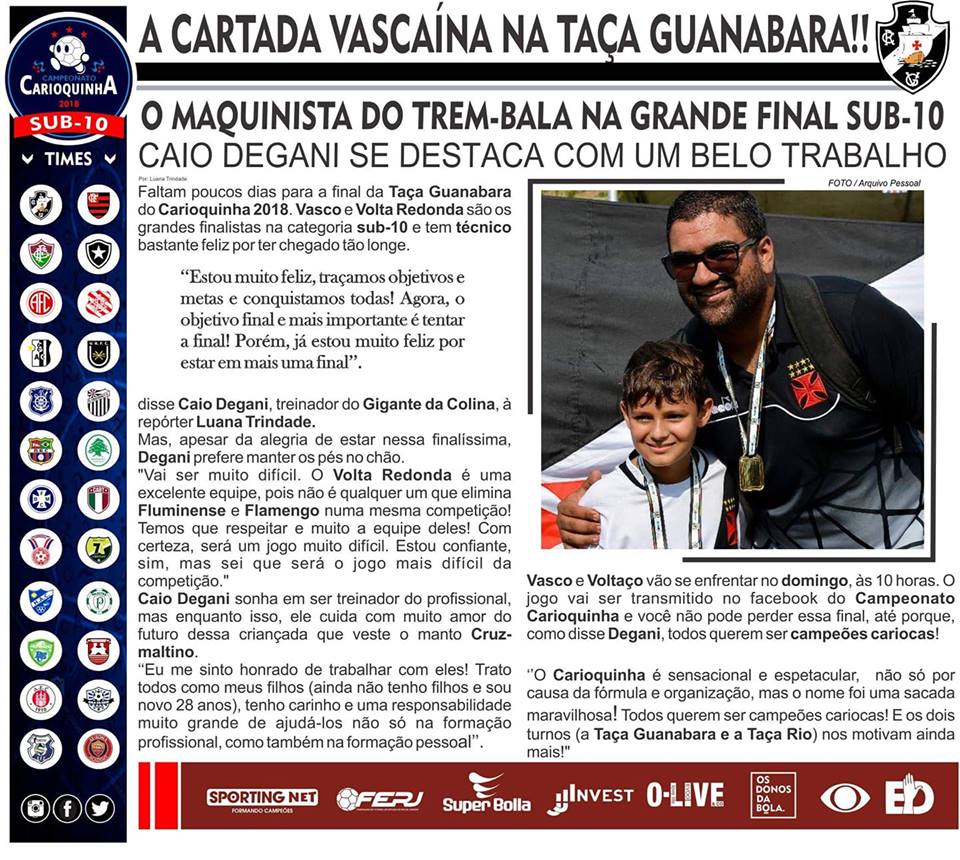 Pré-Mirim: Treinador Caio Degani projeta final da Taça GB do Carioquinha Sub-10 contra o Volta Redonda