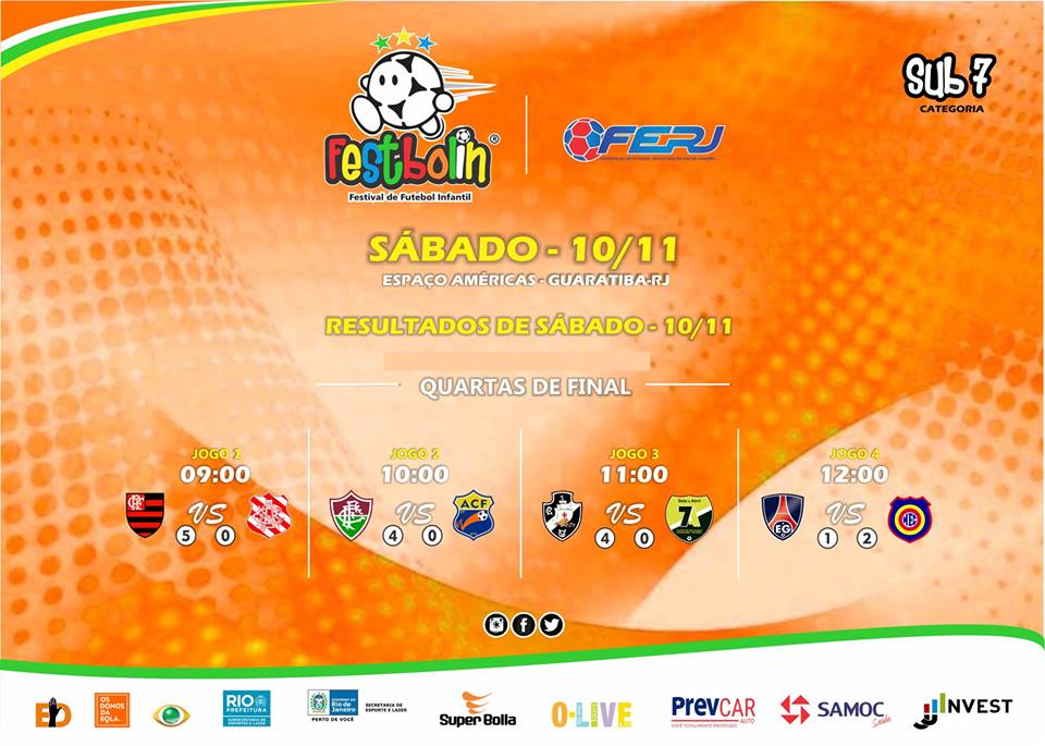 ⚫Seguem os resultados das ''Quartas de Final' do Festbolin Kids 2018 realizada neste sábado dia 10/11.