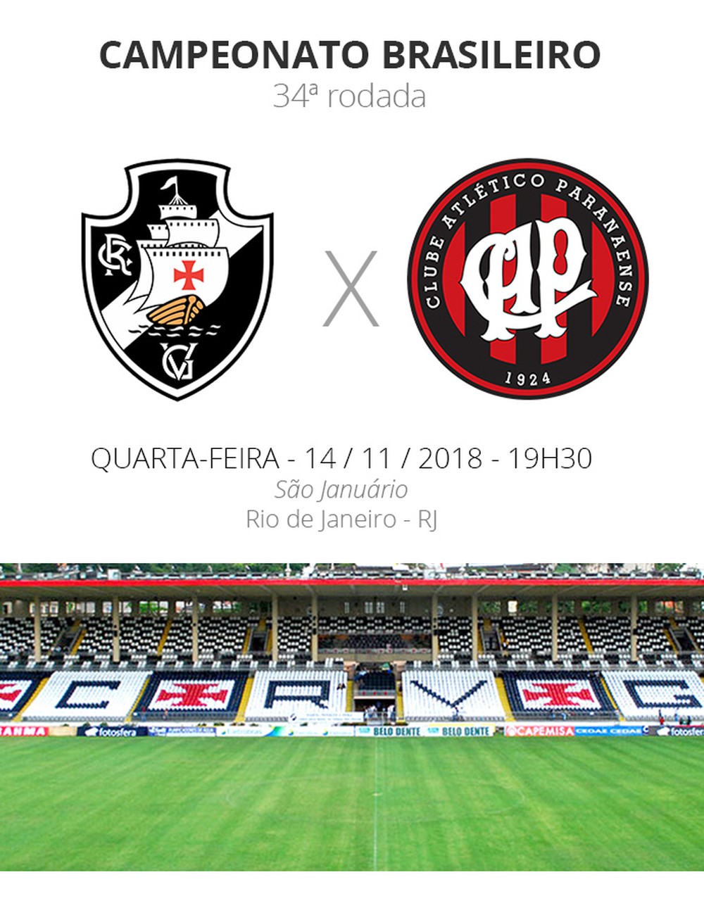 Vasco e Atlético-PR se enfrentam nesta quarta-feira, às 19h30 (de Brasília), pela 34ª rodada do Campeonato Brasileiro, em São Januário. As duas equipes brigam por coisas diferentes na tabela: o Cruz-Maltino tenta se livrar do terceiro rebaixamento, enquanto os paranaenses lutam por uma vaga no G-6.
