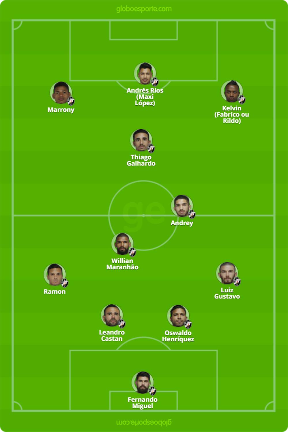 Pela terceira vez seguida, o Vasco deve ter uma equipe bem parecida em campo. Alberto Valentim só deve mexer por causa de suspensões e lesão, mas a expectativa é de que mantenha a base dos times que foram utilizados contra Fluminense e Grêmio. A dúvida está no ataque: Maxi López, se recuperando de uma lesão no pé direito, dificilmente terá condições de jogo.