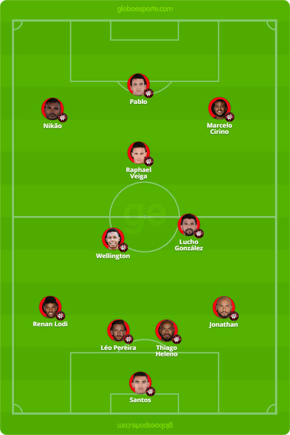Pendurados: Paulo André, Thiago Heleno, Wanderson, Zé Ivaldo, Márcio Azevedo, Wellington, Bruno Guimarães, Nikão e Bergson.