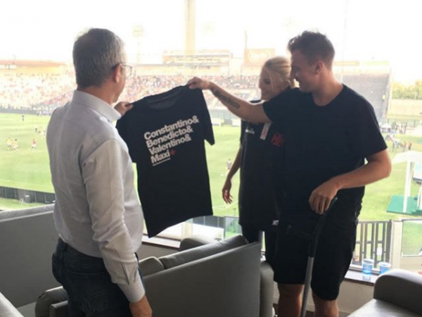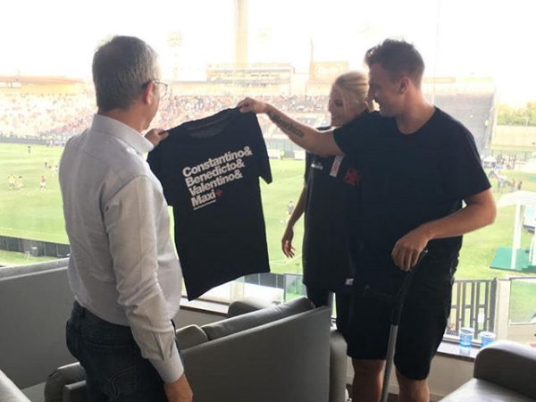 Maxi López recebe de Campello camisa personalizada com os nomes dos seus filhos; veja foto