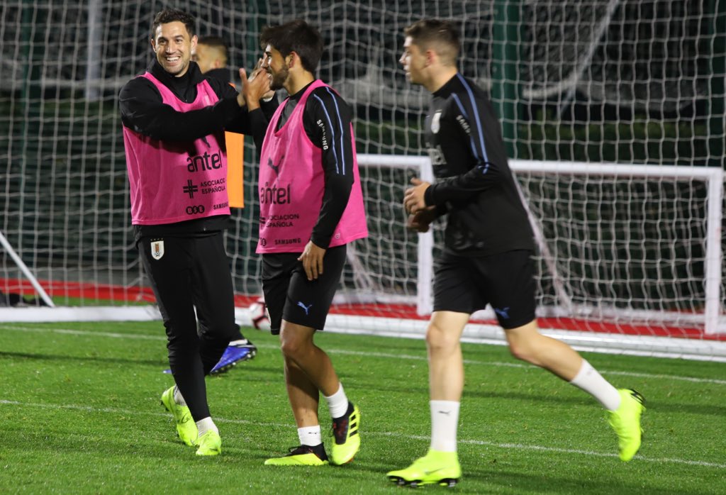 El plantel de @Uruguay realizó el último entrenamiento en el complejo de juveniles del Arsenal. Mañana a las 20:00 h (17:00 h Uy) enfrentará a Brasil.
