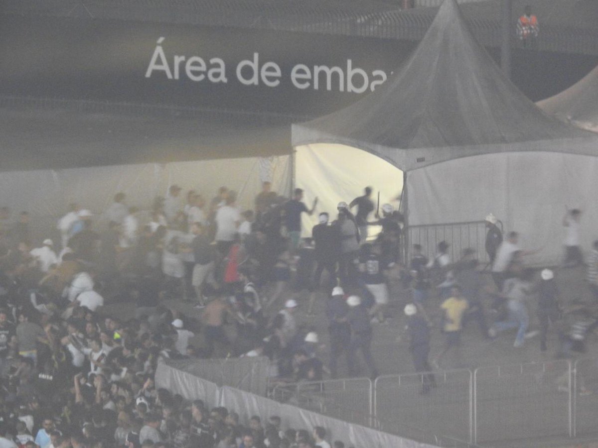 Foto mostra momento do conflito de torcedores vascaínos com a PM após o fim do jogo