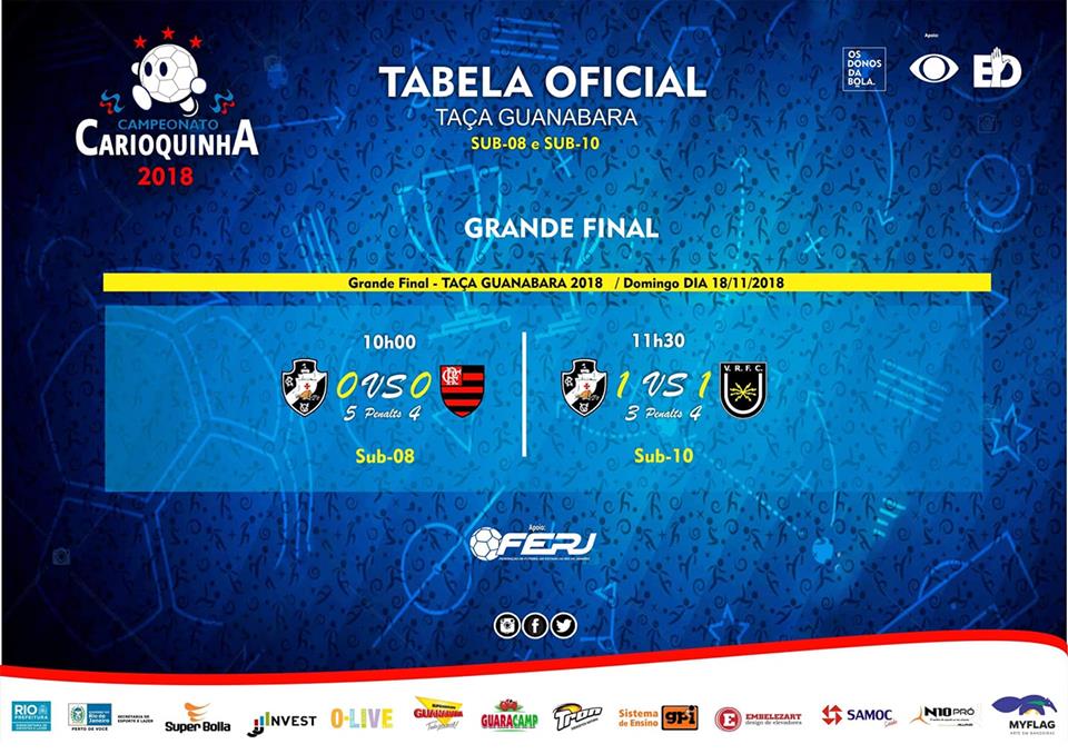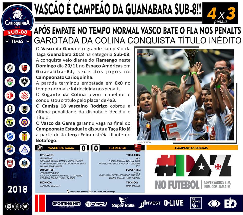 O Vasco venceu o Flamengo nos pênaltis e conquistou a Taça Guanabara do Campeonato Carioquinha Sub-08. No tempo normal, as equipes empataram por 0 a 0.