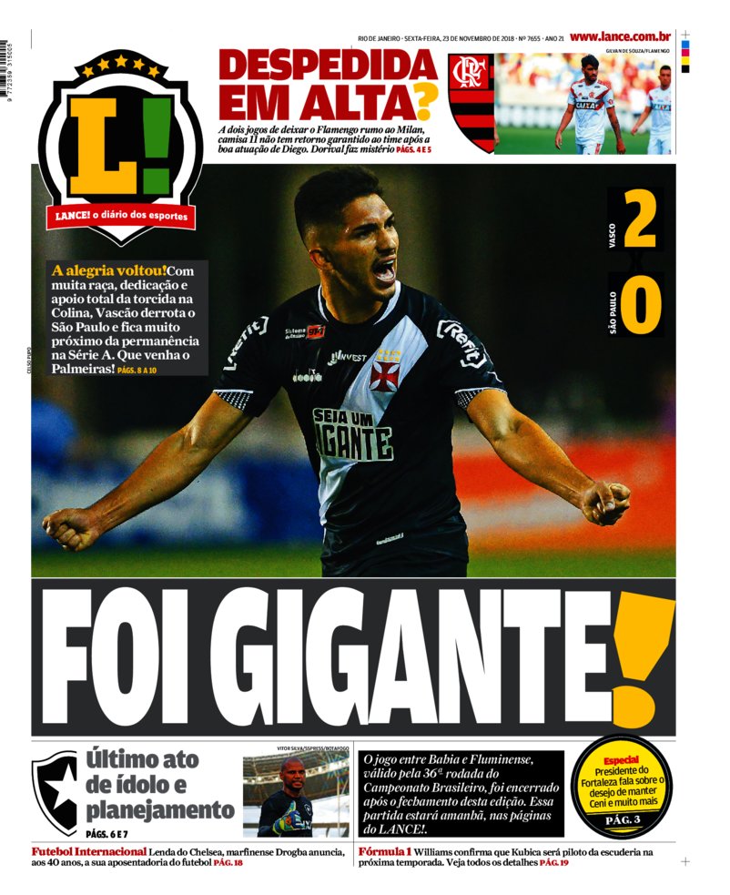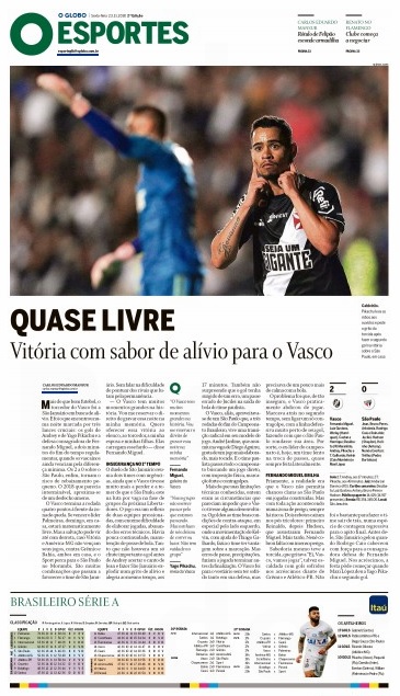 Veja como a imprensa destacou a vitória do Vasco sobre o São Paulo