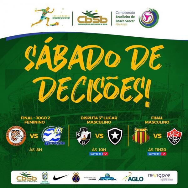 O canal Sportv transmite ao vivo, a partir das 10h deste sábado, o jogo Vasco x Botafogo, decisão do 3º lugar da Copa do Brasil de Beach Soccer. Assinantes do canal podem assistir na web pelo