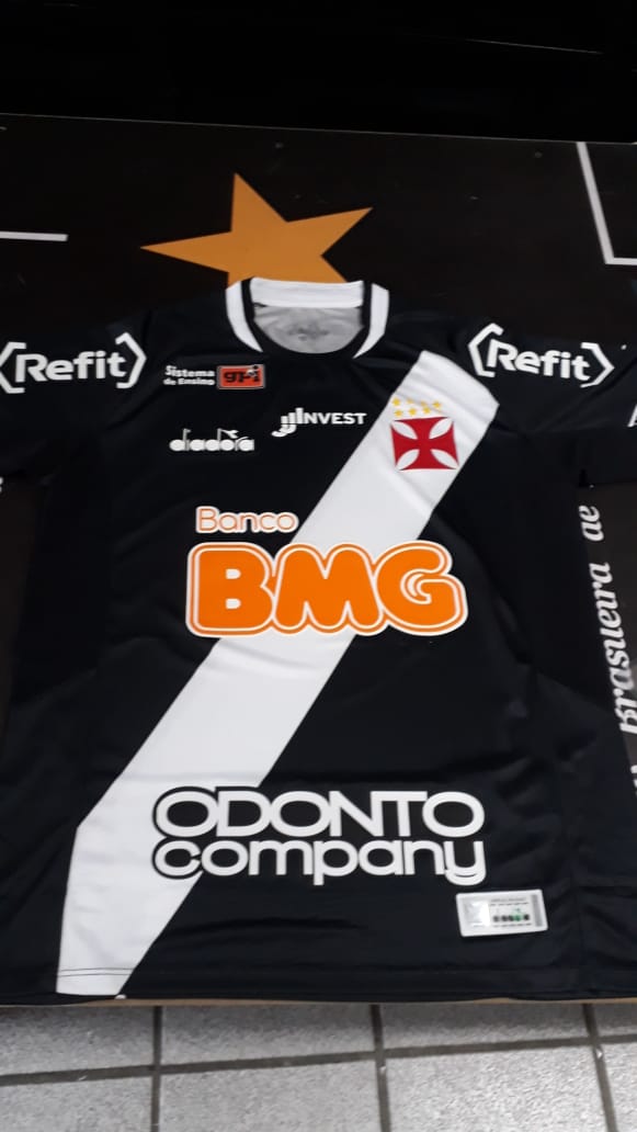 Veja foto da camisa vascaína com os patrocínios de BMG e OdontoCompany