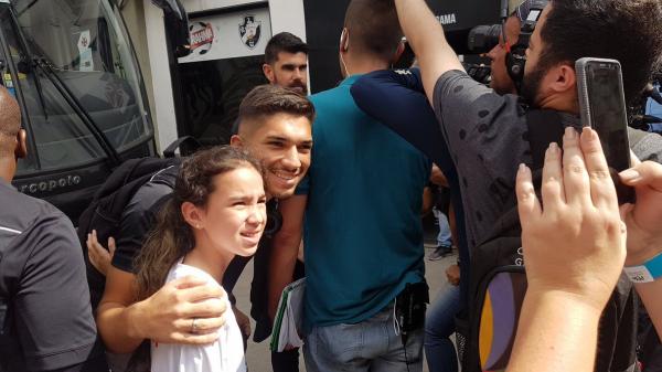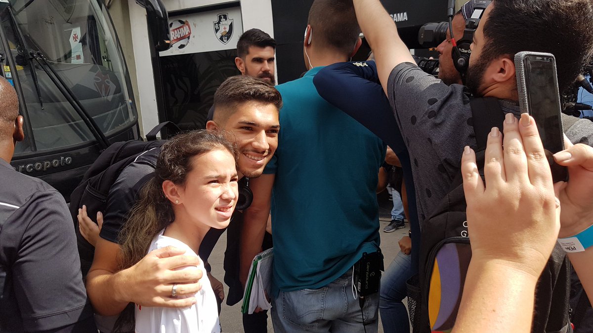 Andrey tirou fotos com torcedores na chegada a São Januário