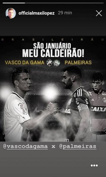Maxi López publica imagem em referência a Vasco x Palmeiras