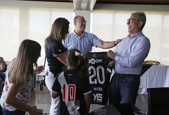O Club de Regatas Vasco da Gama recebeu neste domingo (25/11), a visita do Governador eleito do Rio de Janeiro, Wilson Witzel, que veio à São Januário acompanhado da esposa Helena (que é torcedora do Vasco) e dos três filhos, Vicenzo, Beatriz e Bárbara (que assim como a mãe, é vascaína). Ele foi recebido pelo Presidente Alexandre Campello na sala da presidência, de quem recebeu camisas do Cruzmaltino e onde acompanhará o duelo diante do Palmeiras, pelo Campeonato Brasileiro.