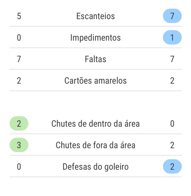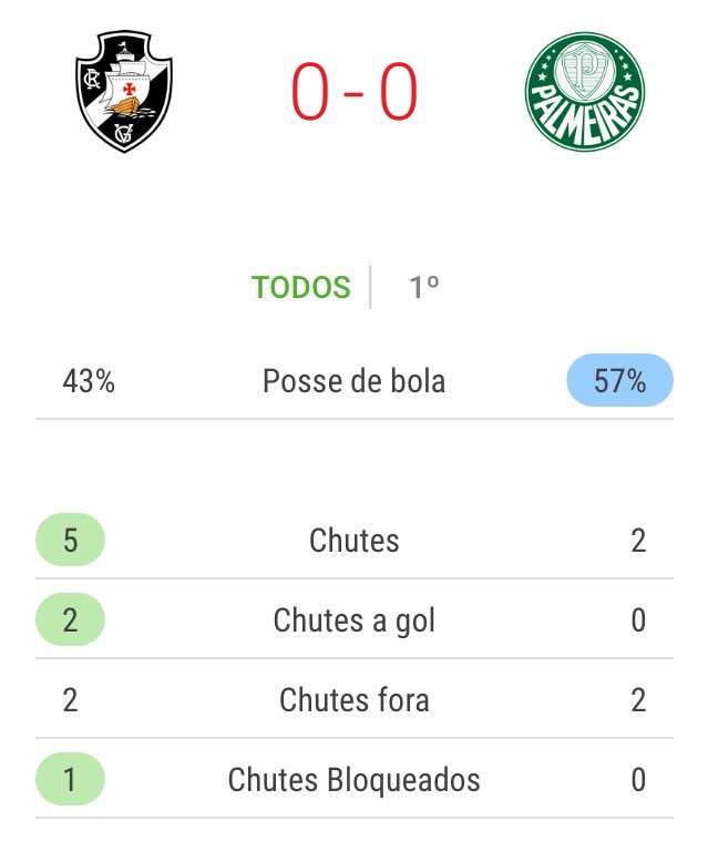 📊 Estatísticas do 1º tempo ⬇️