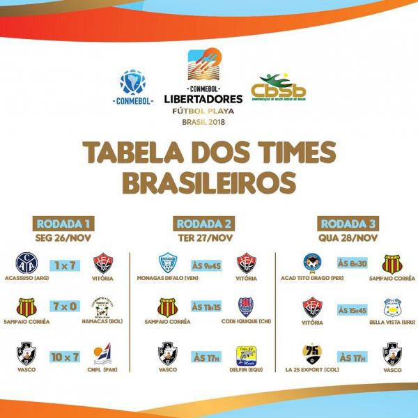 Pela Libertadores de Beach Soccer, o Vasco enfrenta o Delfin-EQU nesta 3ª-feira às 17h no Parque Olímpico da Barra, no Rio de Janeiro.