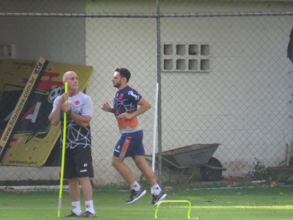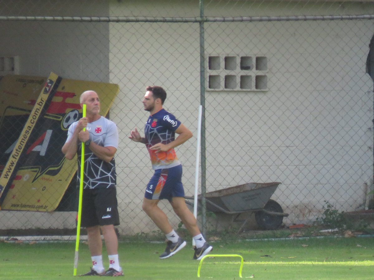 Desábato participou da preleção, mas não está no aquecimento. Ele corre no outro campo. Apesar de não ter tido lesão, ainda sente dor na coxa. #gevas