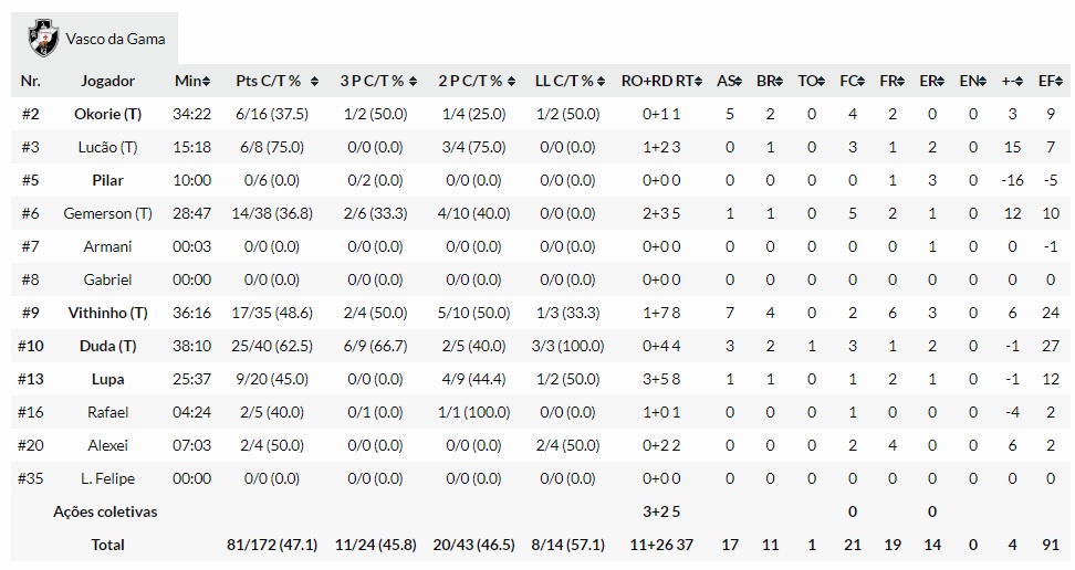 No último quarto, o Vasco acabou voltando mais relaxado por conta da larga vantagem no placar. O São José aproveitou este início e diminuiu a distância. O time de Alberto Bial acordou e voltou pro jogo, aproveitando principalmente os lances livres. O adversário chegou a baixar a vantagem para três pontos, Duda e Vithinho apareceram no momento decisivo e pontuaram, mantendo o Gigante do Basquete na frente. No fim