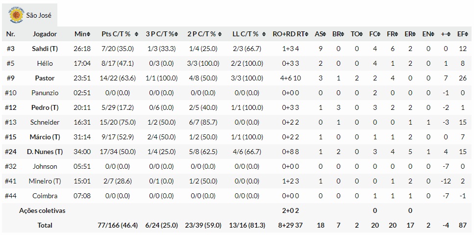 O Vasco começou o jogo com tudo. Bem na defesa, o Gigante do Basquete abriu o placar com uma bola de três de Duda e chegou a largar sete pontos na frente, com cestas de Gemerson e Vithinho. O São José entrou no jogo e depois de ficar nove pontos atrás, encostou, ficando apenas um. Mas o Cruzmaltino acalmou e novamente com bolas certeiras de Vithinho e Gemerson abriu seis pontos, encerrando o primeiro período na frente por 19 a 13.