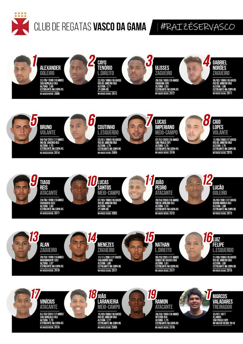 O #Vasco sub-20 estreia hoje na Copa RS. Enfrenta o Palmeiras, às 21h30. O Cruzmaltino está no Grupo C, que tem também o Atlético-MG, Toluca-MEX e River Plate. Daqui a pouco, entrevista exclusiva com o técnico Marcos Valadares. Confira os relacionados. @RdMaisEsportes