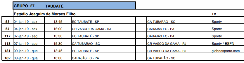 O Departamento de Competições da Federação Paulista de Futebol divulgou nesta sexta-feira (30) a tabela de jogos da 50ª Copa São Paulo de Futebol Júnior. O torneio tem início no dia 2 de janeiro com quatro partidas, três delas com transmissões de ESPN e Sportv.