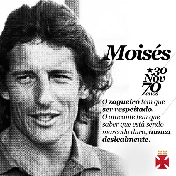 Há 70 anos nascia o grande zagueiro Moisés, que atuou no Vasco de 1971 a 1976. Nosso Xerife conquistou pelo Gigante da Colina o campeonato brasileiro de 74. Infelizmente, Moisés nos deixou em 2008, mas sua entrega em campo sempre será lembrada.