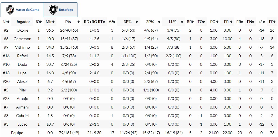 O último quarto foi bem equilibrado, mantendo a tônica de um jogo pegado, como foi em toda a partida. Melhor do Vasco no jogo, Nick Okorie puxou a pontuação do time. O período terminou com empate em 22 a 22. Vitória do adversário por 97 a 79.