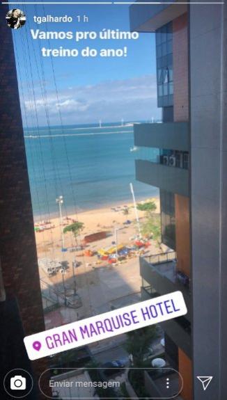 As brincadeiras começaram depois que o meia Thiago Galhardo fez um publicação no Instagram marcando o hotel na localização.