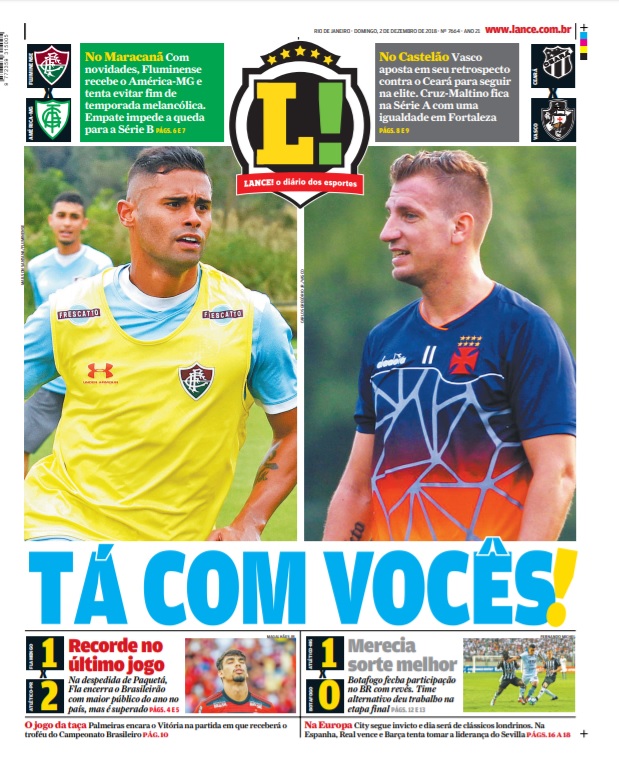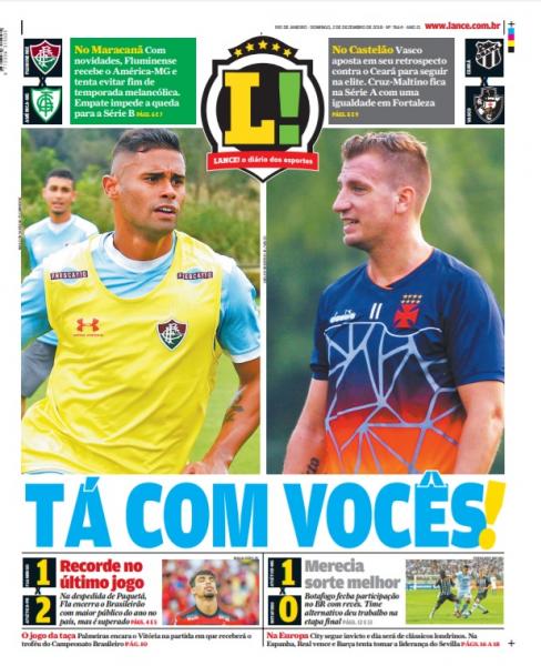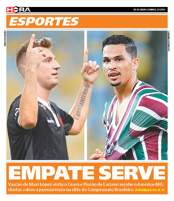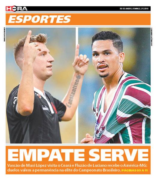 Pela última rodada do Campeonato Brasileiro, o Vasco enfrenta o Ceará fora de casa precisando do empate para se salvar do rebaixamento. O Fluminense é outro clube carioca ameaçado de queda. Veja como a imprensa carioca destacou a rodada decisiva.