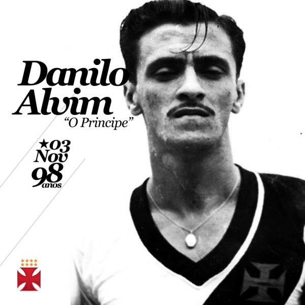Via Twitter, Vasco homenageia o ídolo Danilo Alvim, que estaria completando 98 anos