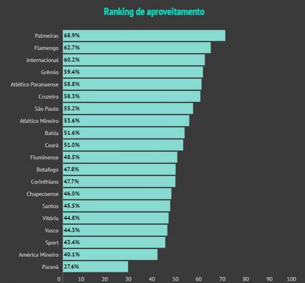 Aproveitamento das equipes da Série A em 2018 - jogos oficiais - todas as competições