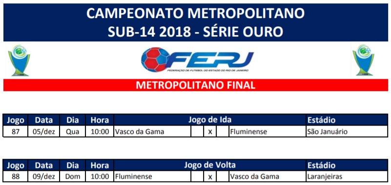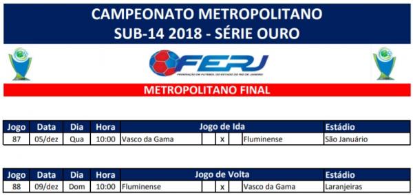 Infantil: Vasco faz 1º jogo da decisão do Metropolitano Sub-14 contra o Fluminense nesta 4º às 10h em São Januário