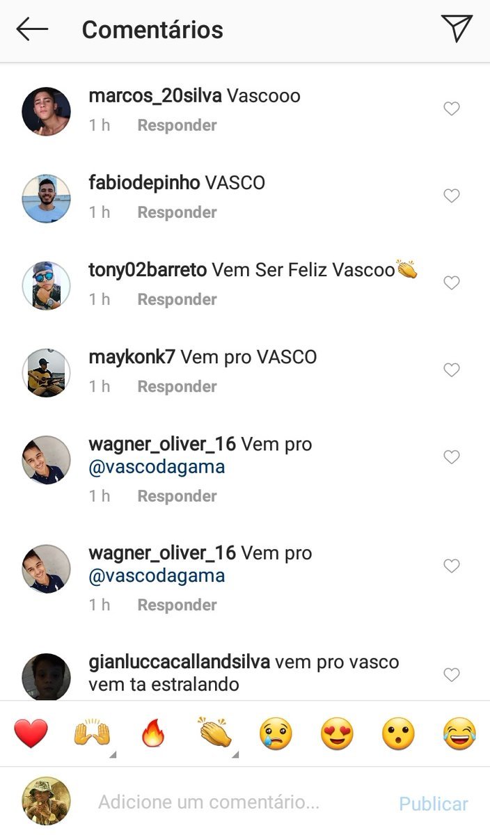 Vascaínos 'invadem' Instagram de Gino Peruzzi pedindo que ele acerte com o Vasco