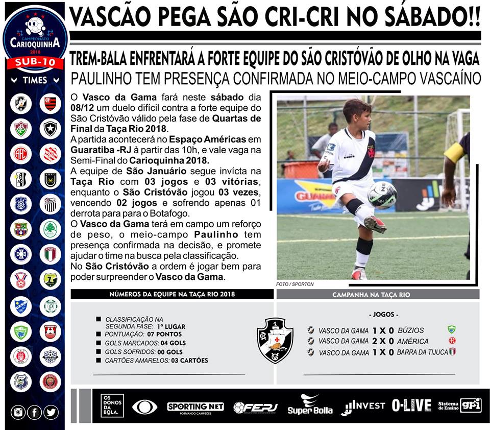 02/12/18 - Pré-Mirim: Vasco vence seus jogos pela Taça Rio do Carioquinha Sub-08, Sub-09 e Sub-10