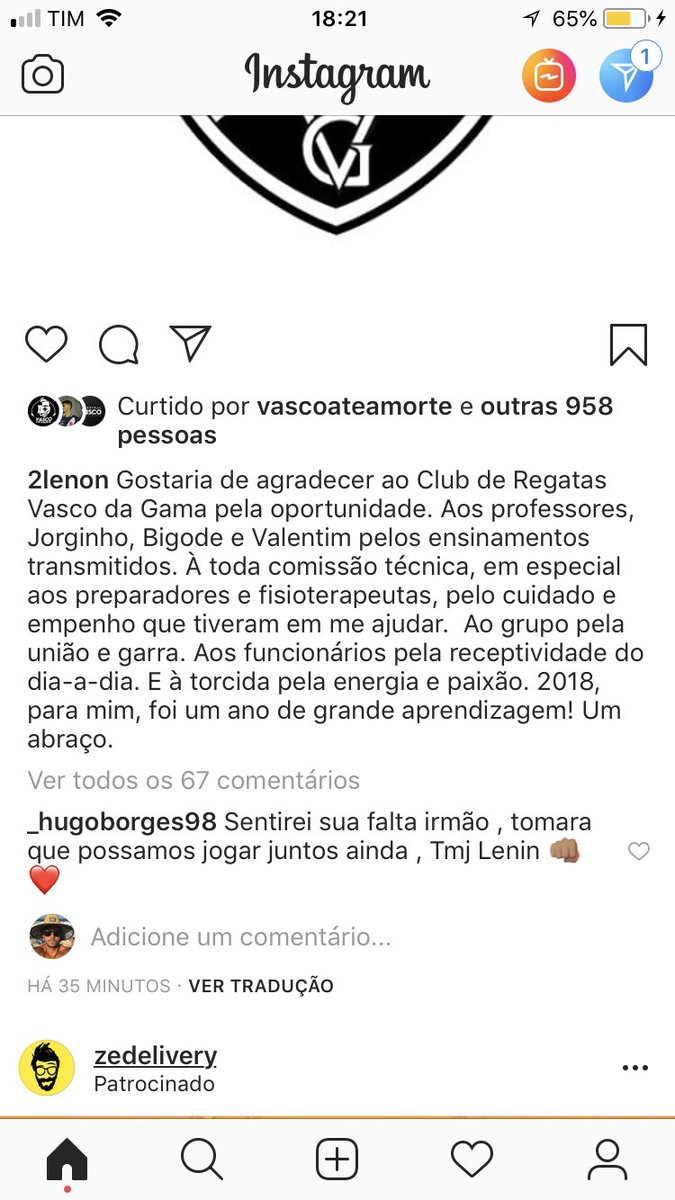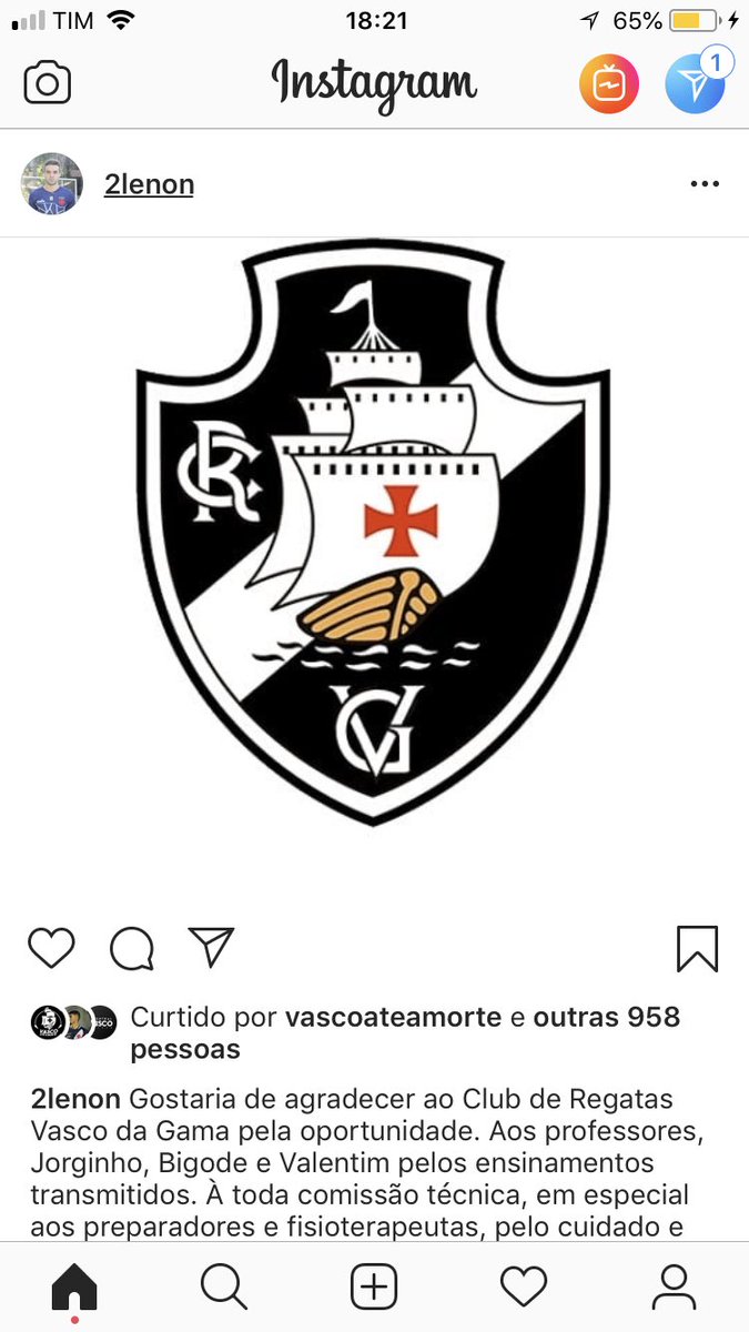 Comunicado oficialmente de que não terá seu contrato renovado, o lateral direito Lenon postou no Instagram uma despedida ao Vasco: