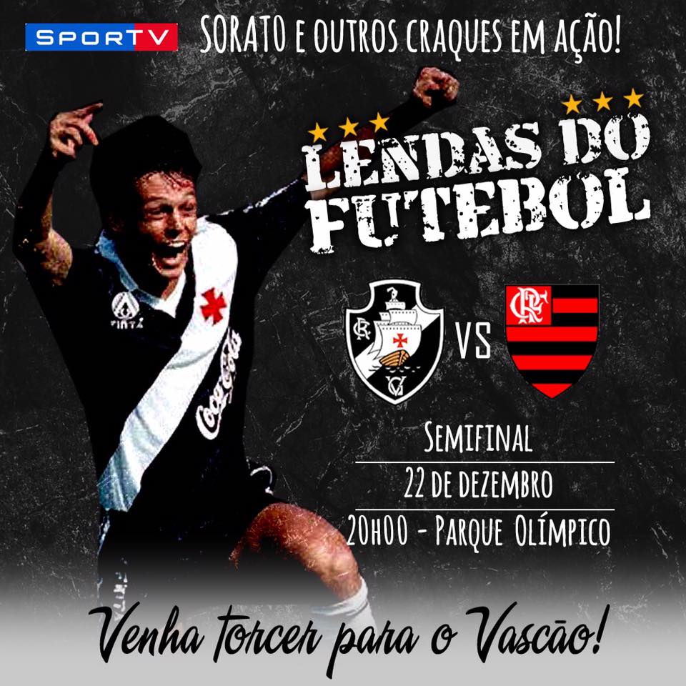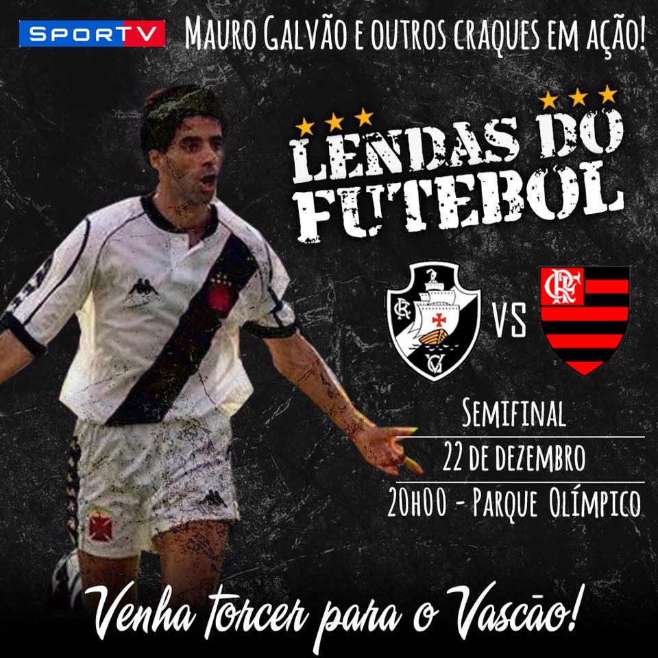 Masters: Evento 'Lendas do Futebol' terá Vasco x Urubu com ídolos no dia 22/12 no Parque Olímpico e com Sportv