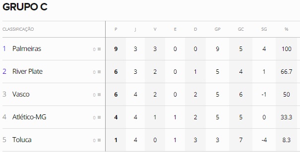 Veja a classificação do Grupo C: