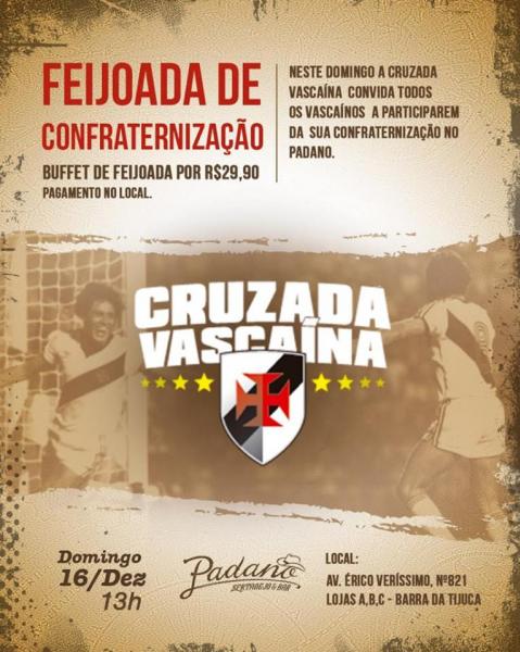 Cruzada Vascaína promove feijoada de confraternização neste domingo