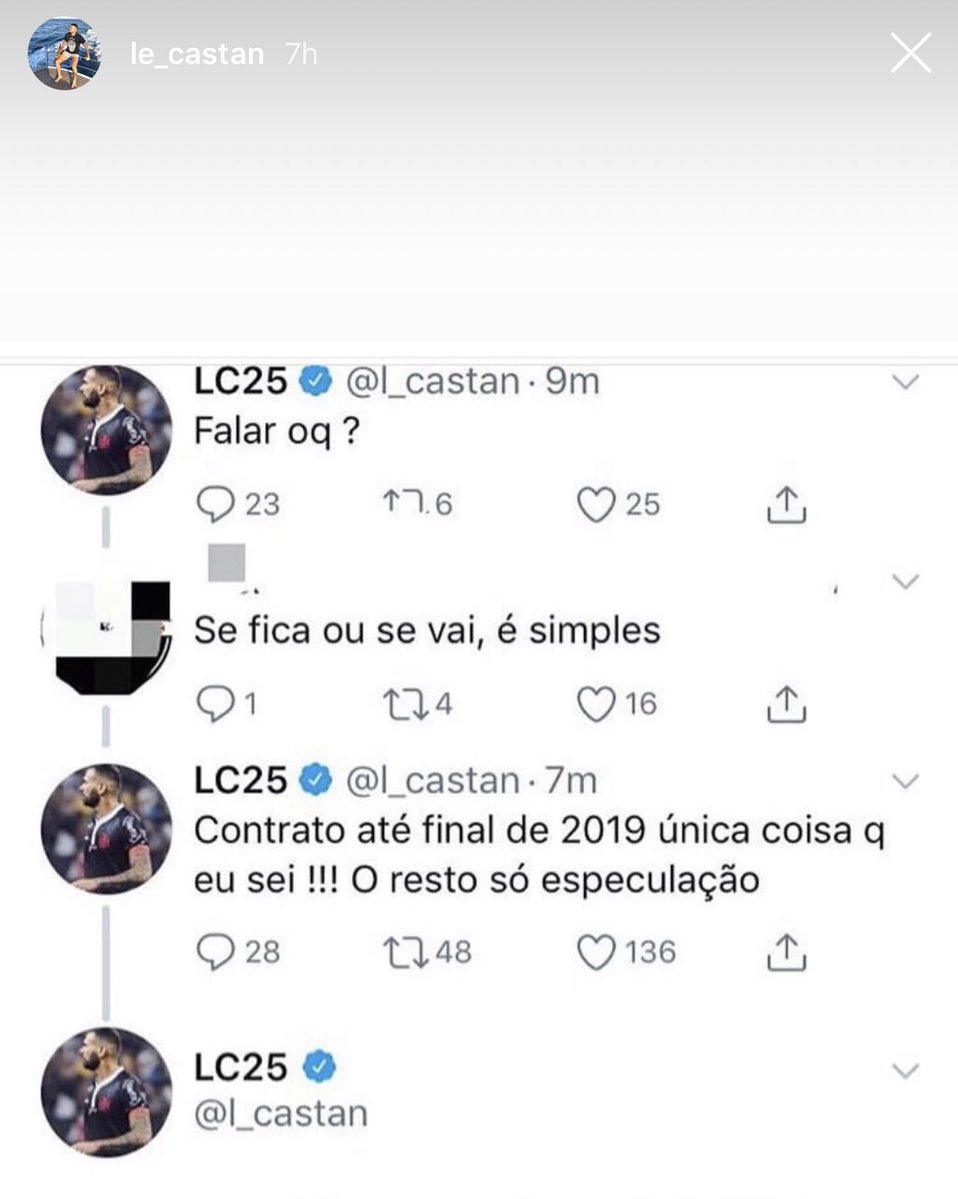Leandro Castan tem publicado no Instagram uma troca de mensagens com um torcedor em que diz basicamente que tem contrato até o fim de 2019, dando a entender que vai ficar no Vasco. pra que negociar com o Corinthians, então? por lá, dizem que já está tudo bem encaminhado...