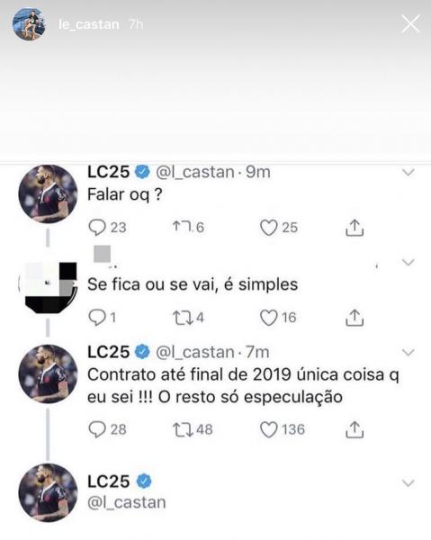 Fonte: Twitter do jornalista Bruno Giufrida/GloboEsporte.com (texto), Instagram do jogador Leandro Castan (foto)